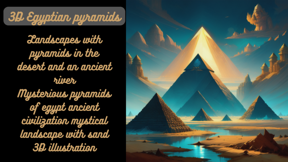 Mysterious pyramids of egypt ancient civilization mystical landscape with sand 3D illustration